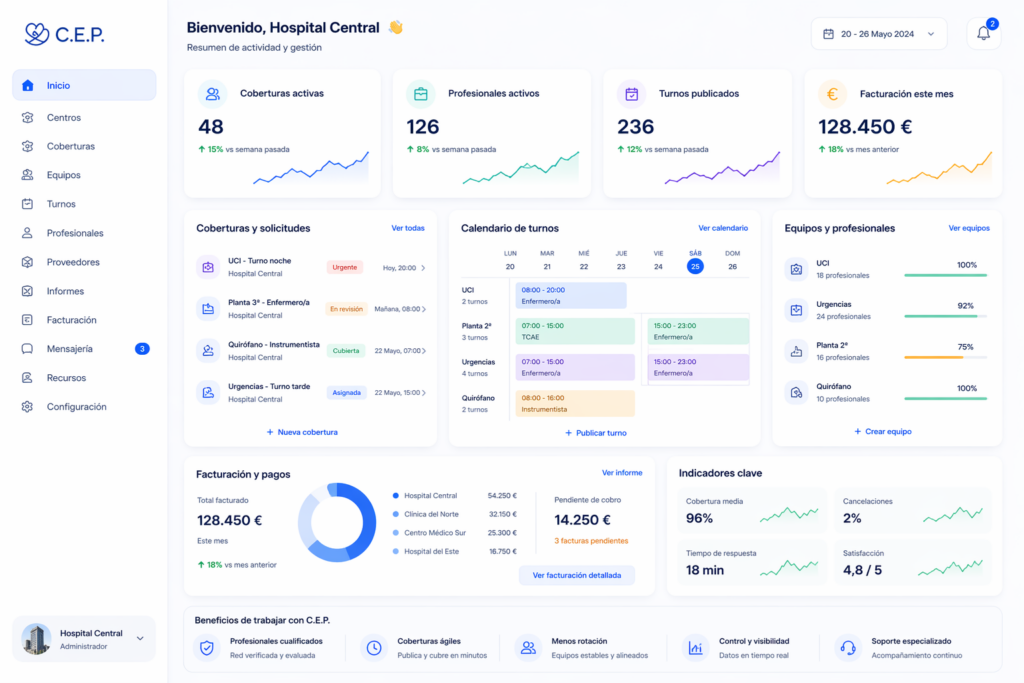 Gestiona equipos, turnos y facturación en un solo lugar